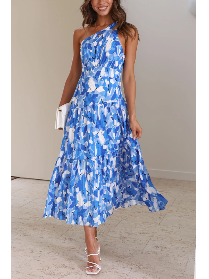 Printed One Shoulder Asymmetrical Maxi Dress - Pink Multi