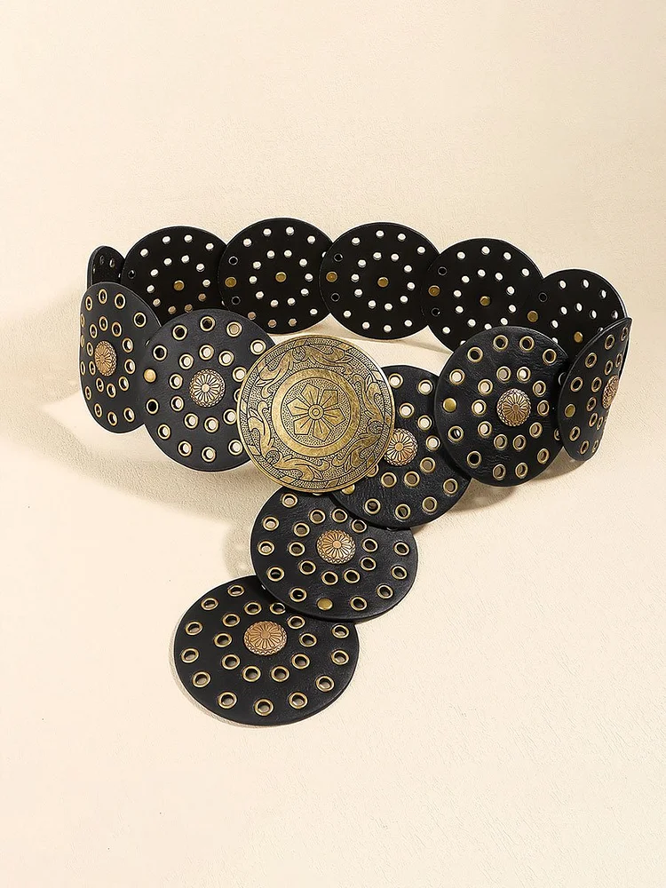 Vintage Western Cowboy Round Hollow Metal Wide Belt