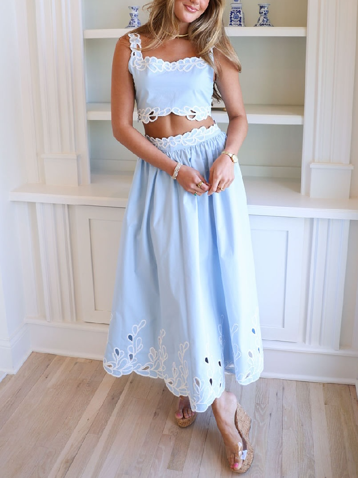 V-neck Wide Shoulder Strap Wavy Long Skirt