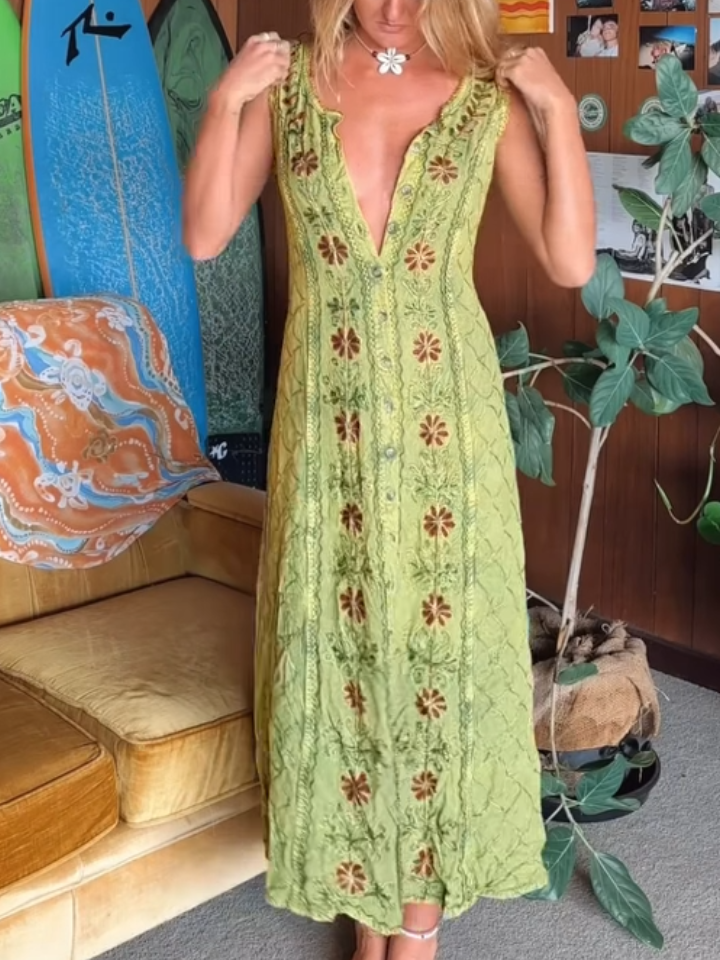 Sharya Halter Neck Maxi Dress - Lemon Floral