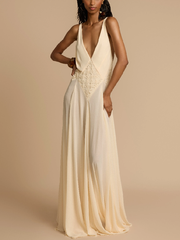 Women Elegant Sexy Backless Stain Maxi Dresses