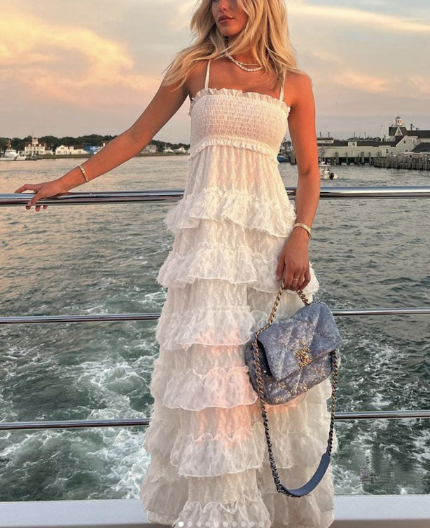 Elegant White Ruffle Long Prom Dress