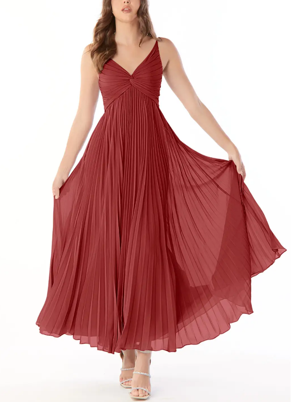 Pleated satin berry dress