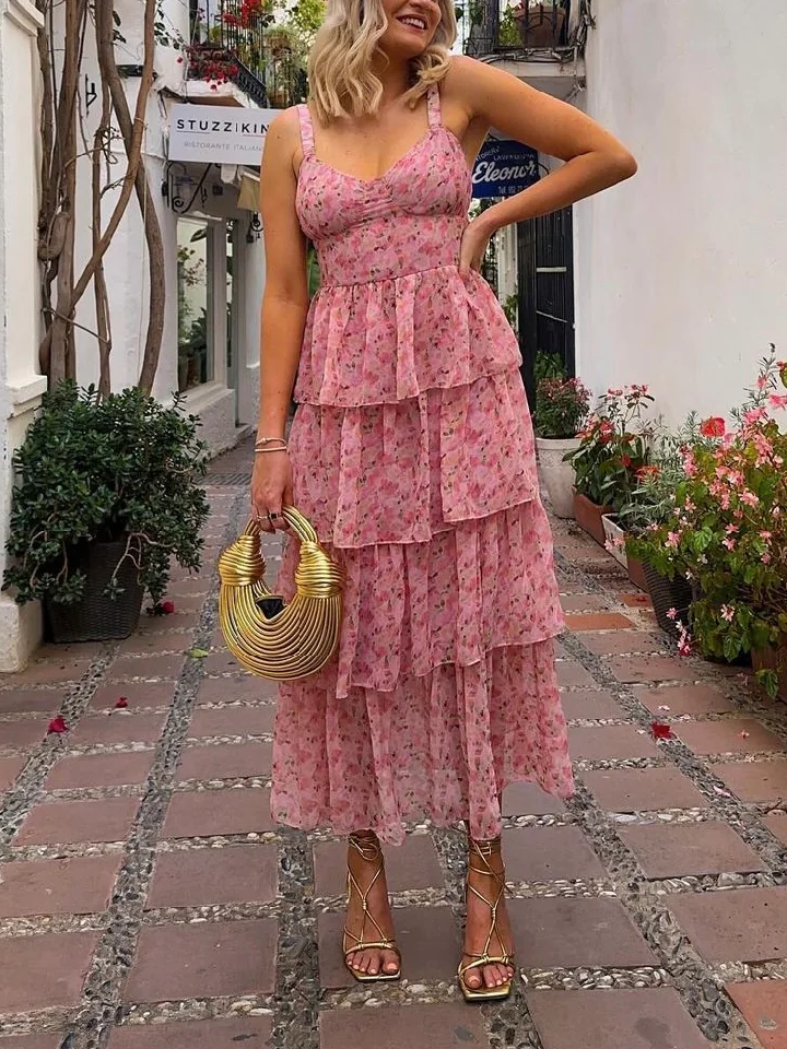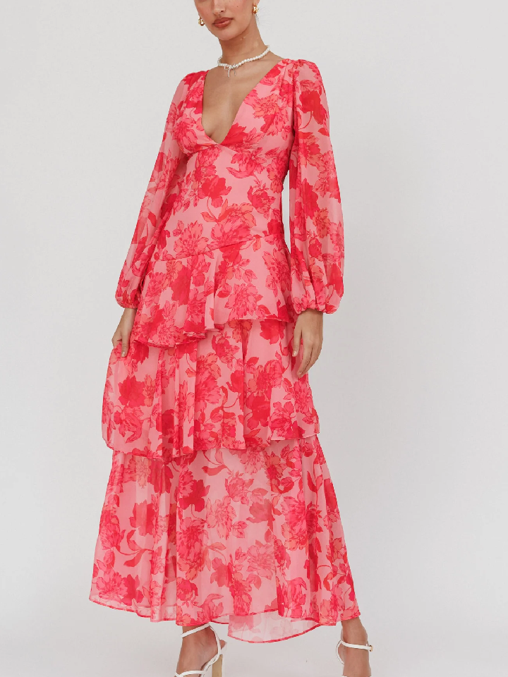 Puglia pink tiered floral ruffle maxi dress