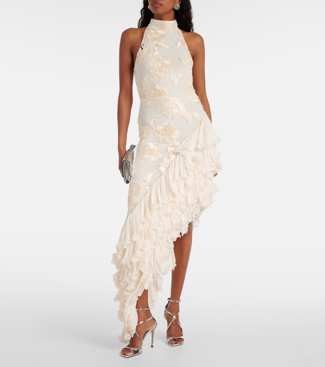 Printed One Shoulder Asymmetrical Maxi Dress - Green Multi