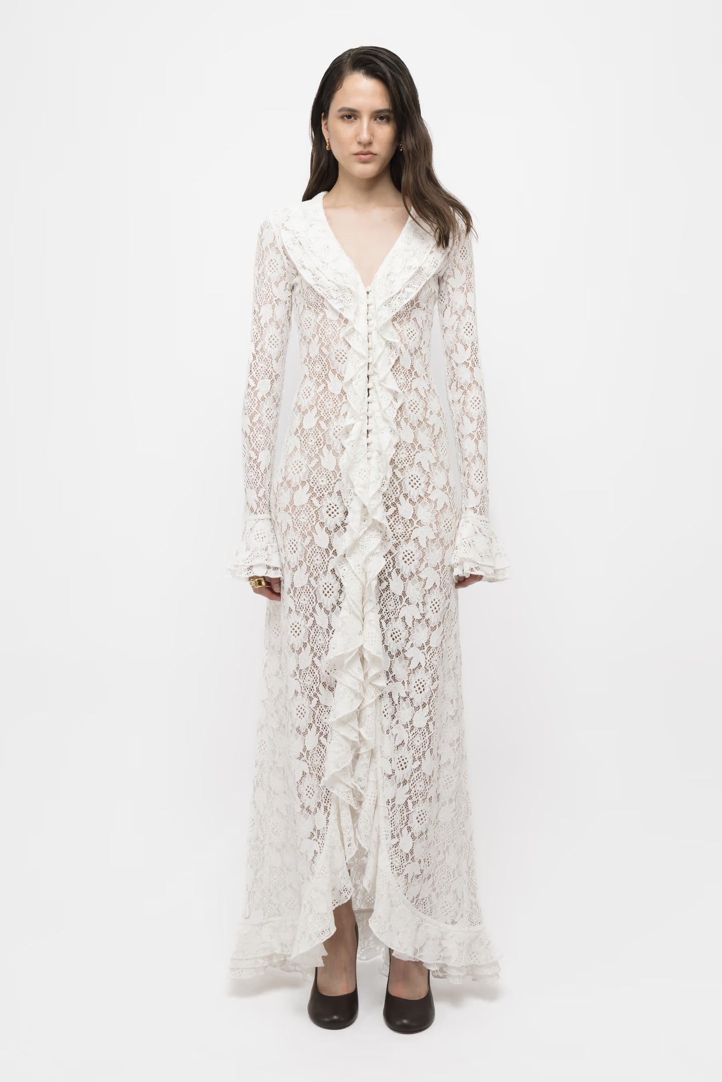 Ivory Lace Sheer Duster Gown