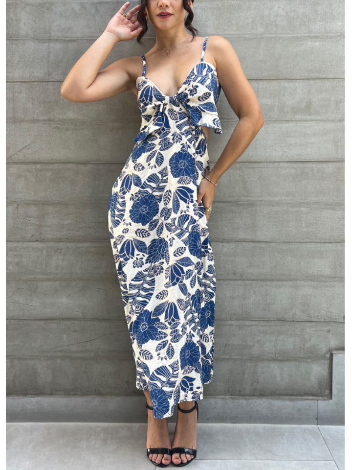 Josie Tulle Midi Dress | Dusty Blue Floral