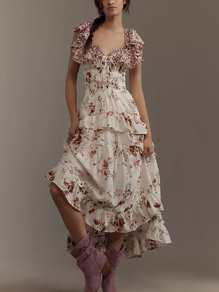 Palms Ruffle Maxi Dress