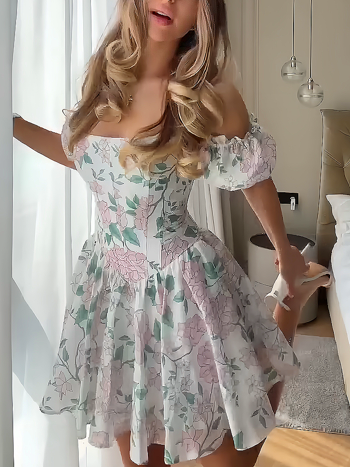 Shoulder Floral Short Dress