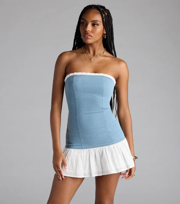 Ruffled Denim Mini Dress