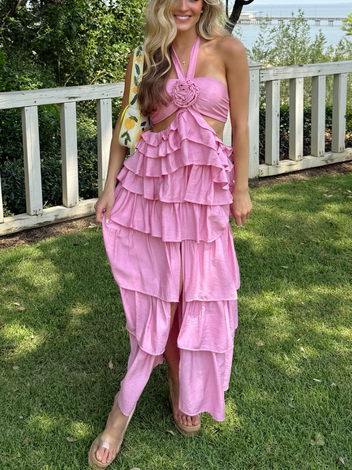 Hanging Neck Flower Sling Cake Dress