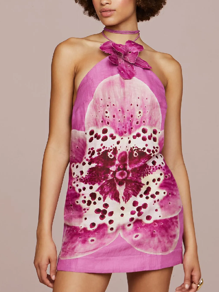 Veronica Floral Applique Halter Mini Dress