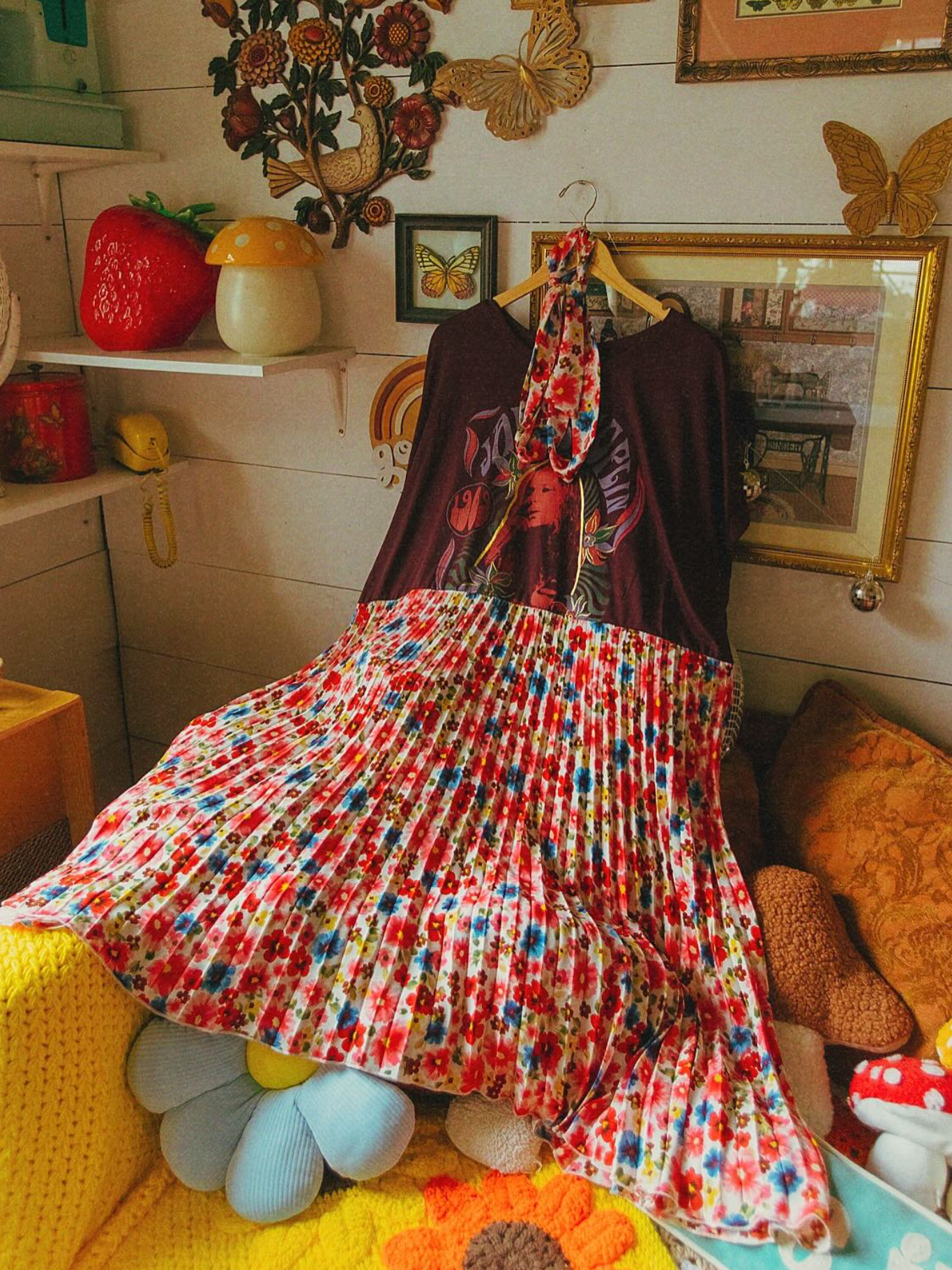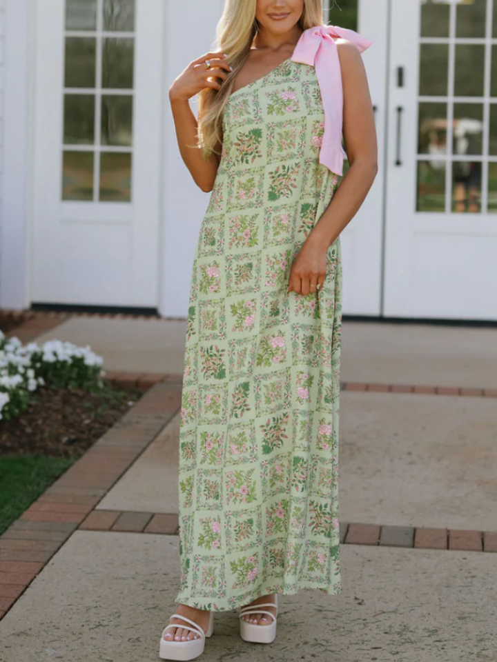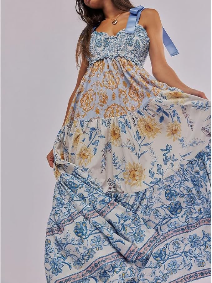 Women Summer Floral Sleeveless Maxi Dress Tie-Up Straps Long Dress