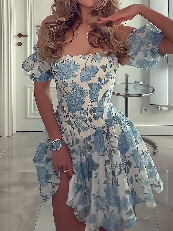 Blue Off-shoulder Short Dress
