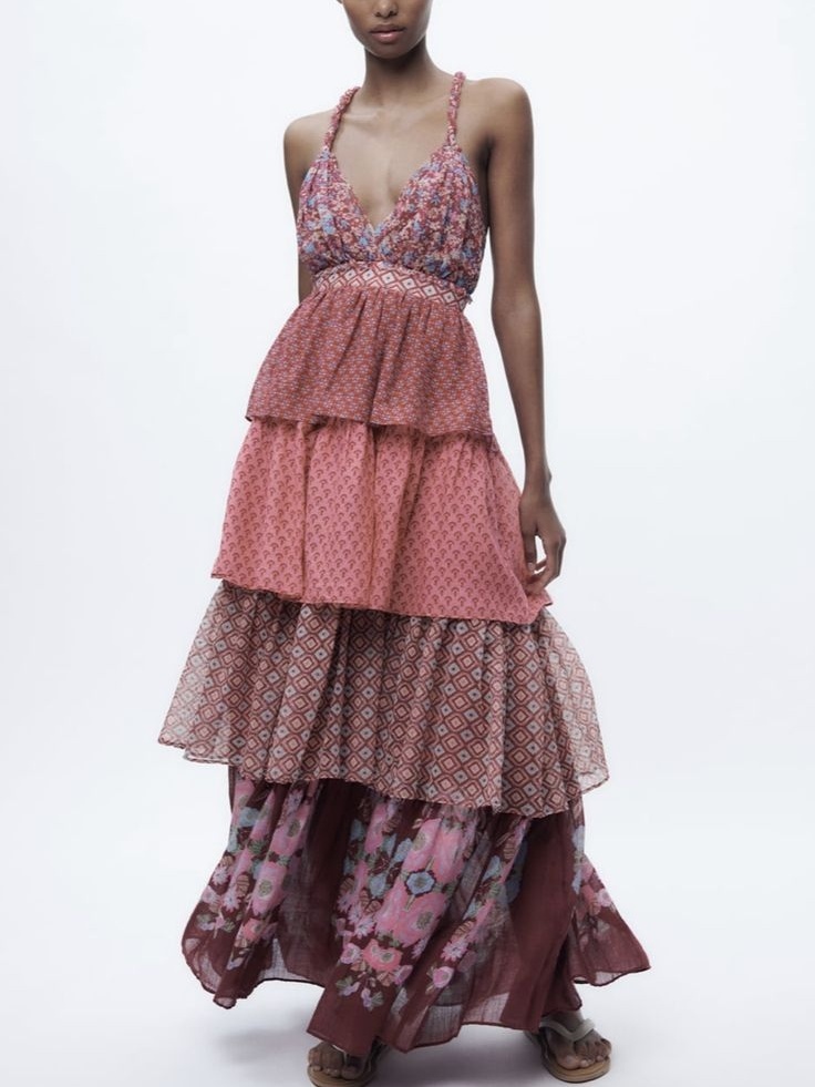 Amber Glow Cascade Maxi Dress