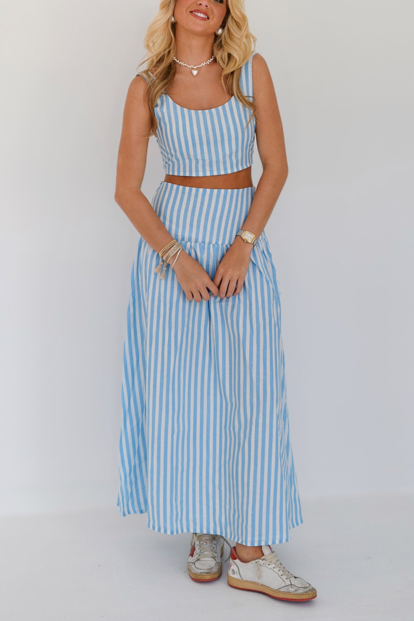 Clova Maxi Skirt Set - Baby Blue/White Stripes (PREORDER)