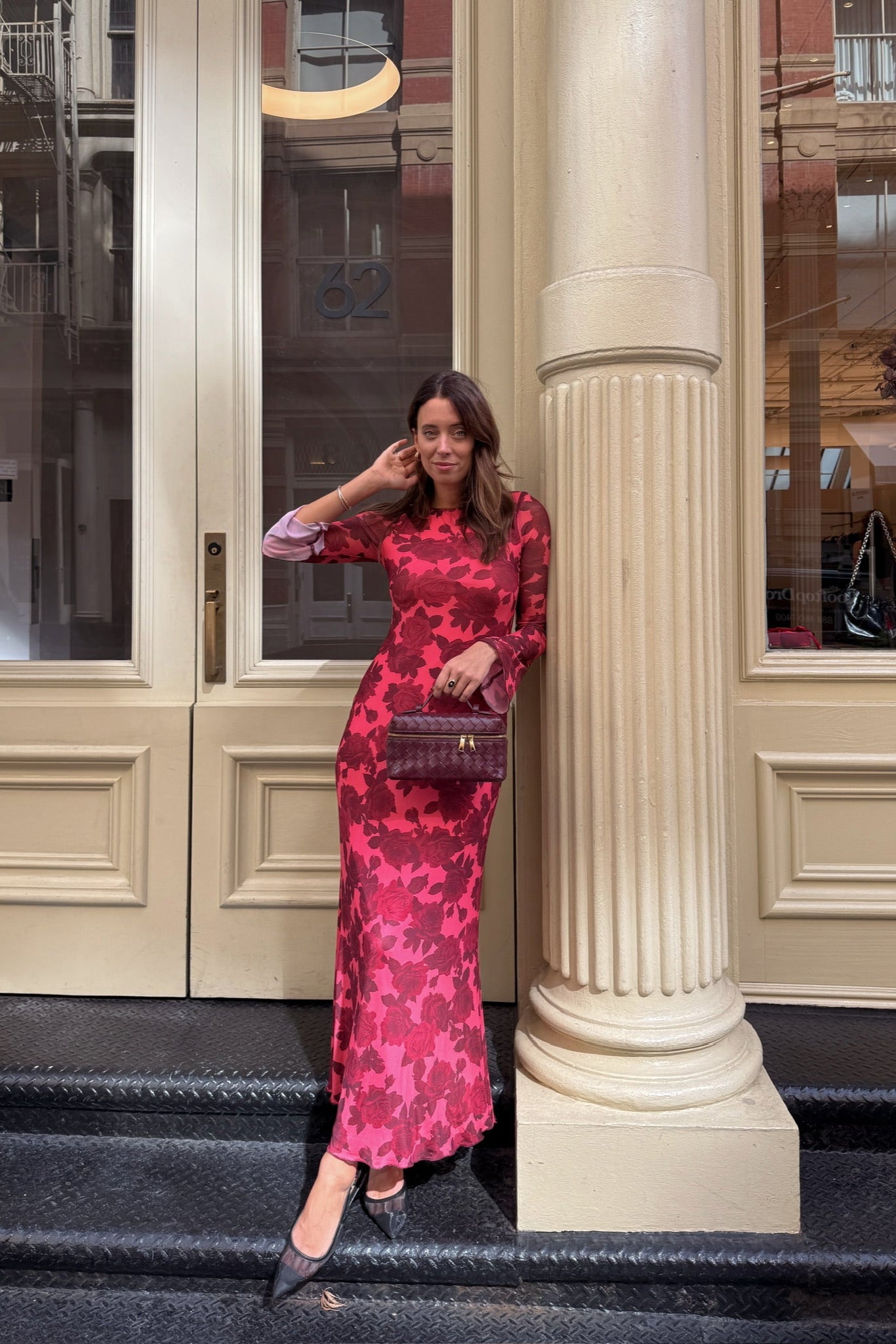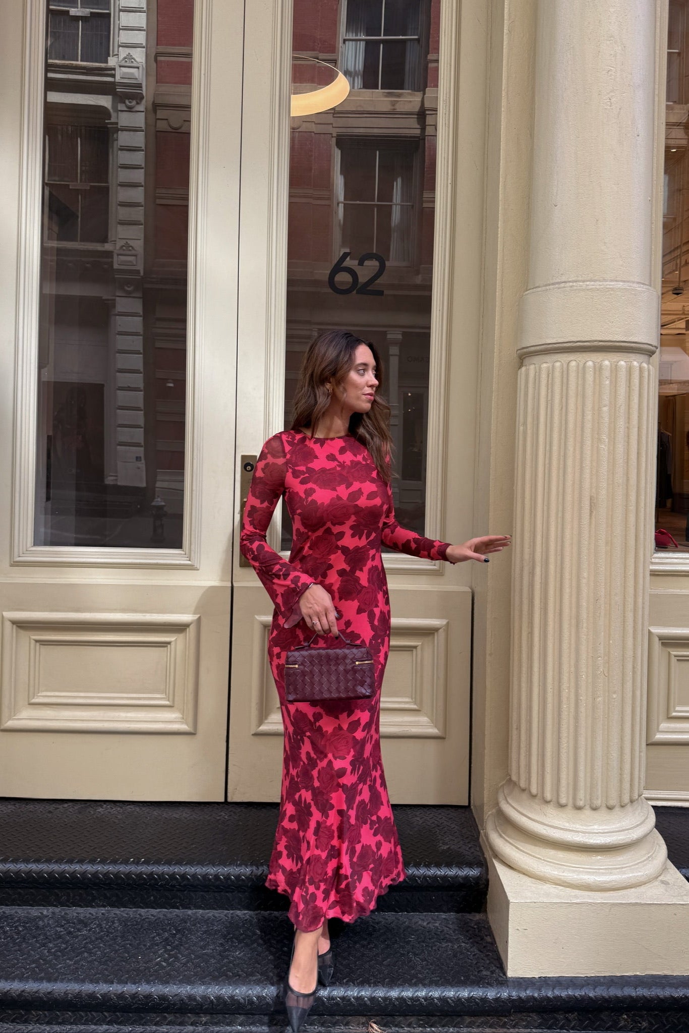 - Floral print mesh dress