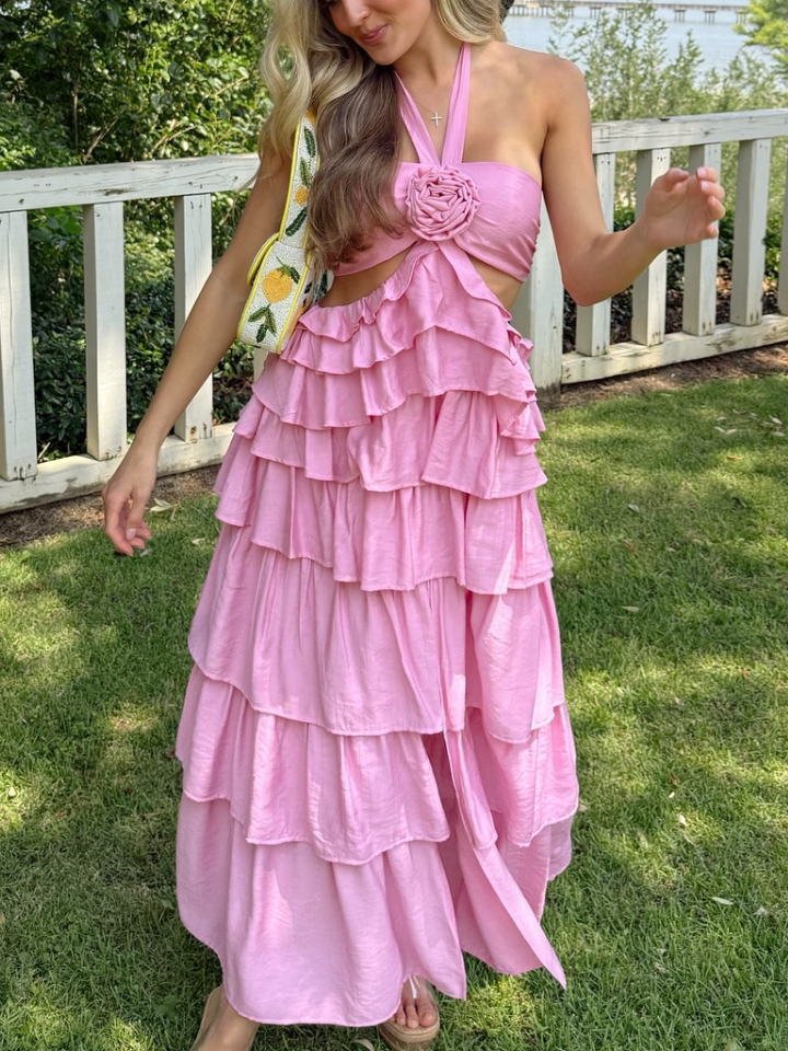 escription Jaws will drop when you float by in our gorgeous dress. With its pretty, tiered ruffles and strappy back, it's fit for a princess. Perfect for a flirty first date teamed with mules and a tote for a dreamy look. Details SPU:DRWT25060505