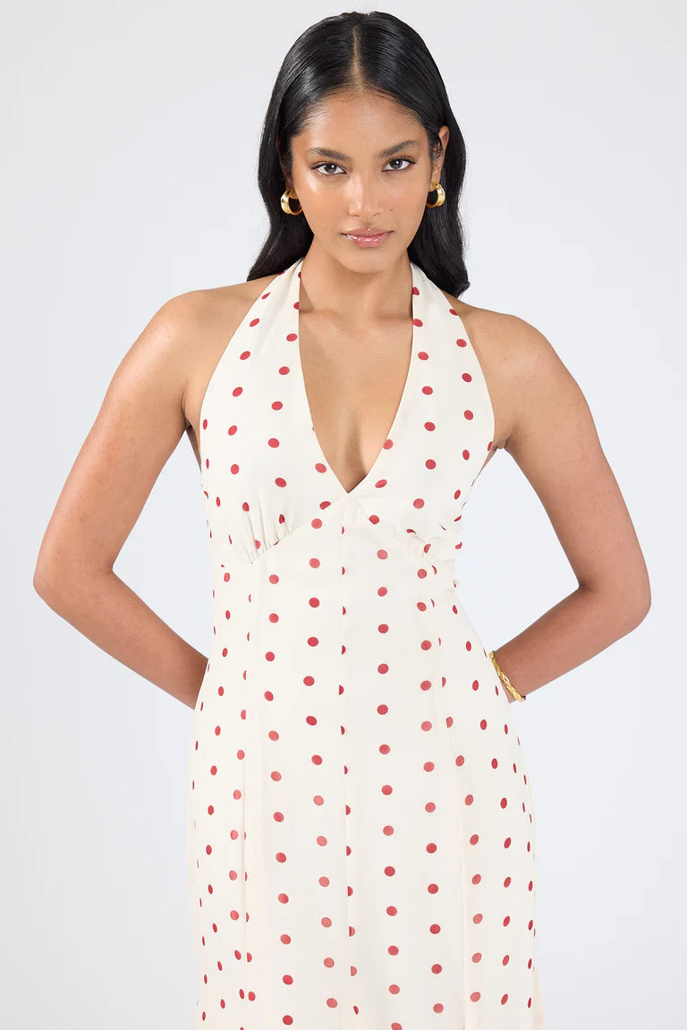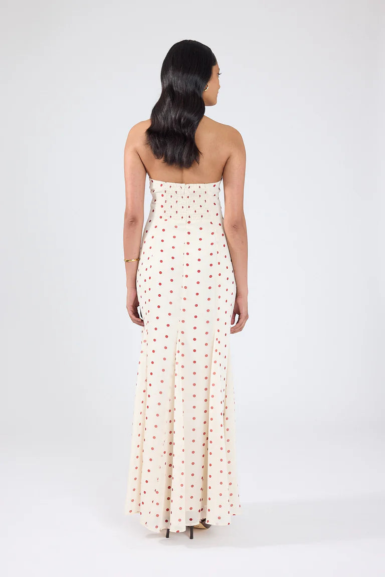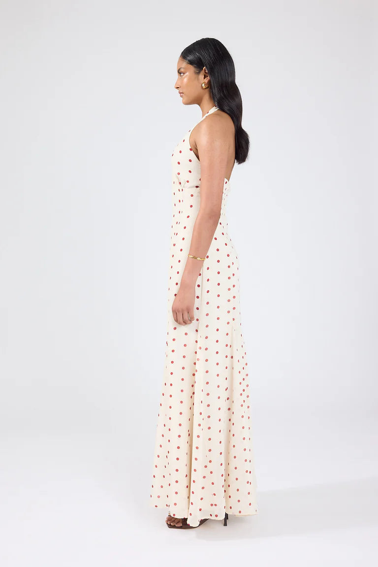 Feminine, flowing and effortlessly modern. The Ivana Maxi is the kind of dress you'll keep coming back to. Designed in a red and cream polka, your new favourite print.