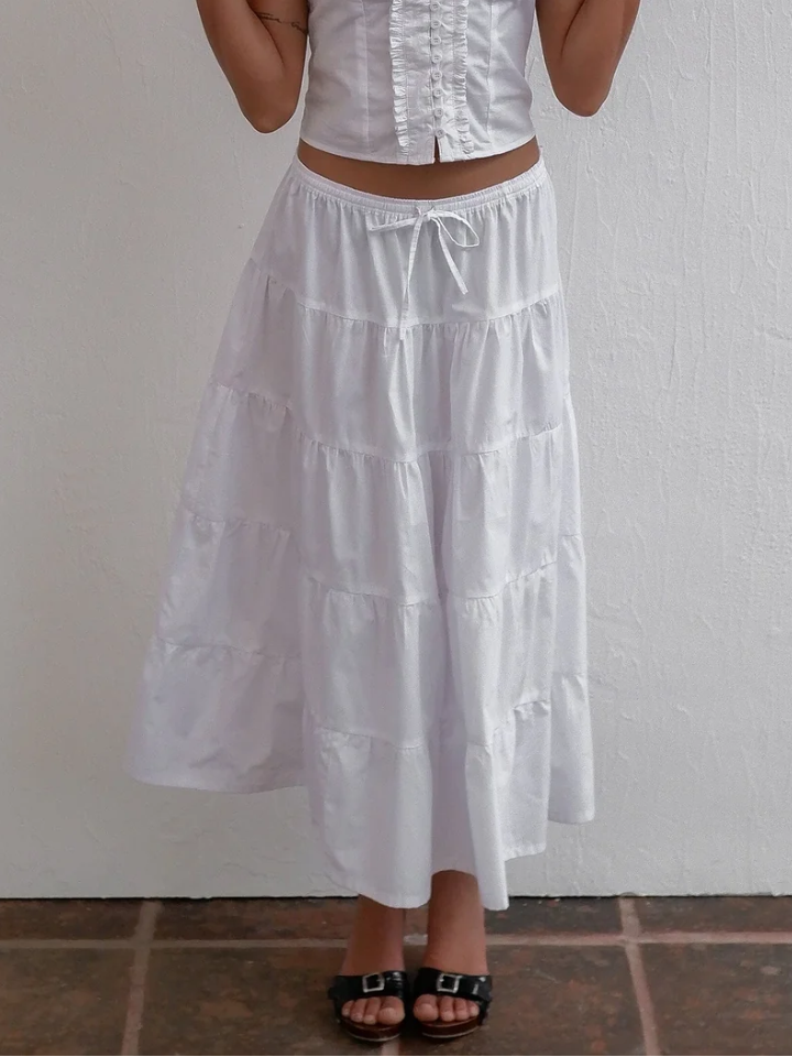 Designed to go with anything, anywhere, this is a tiered maxi skirt with a high waist and an elastic waistband. It’s cut from lightweight cotton twill with a soft feel.