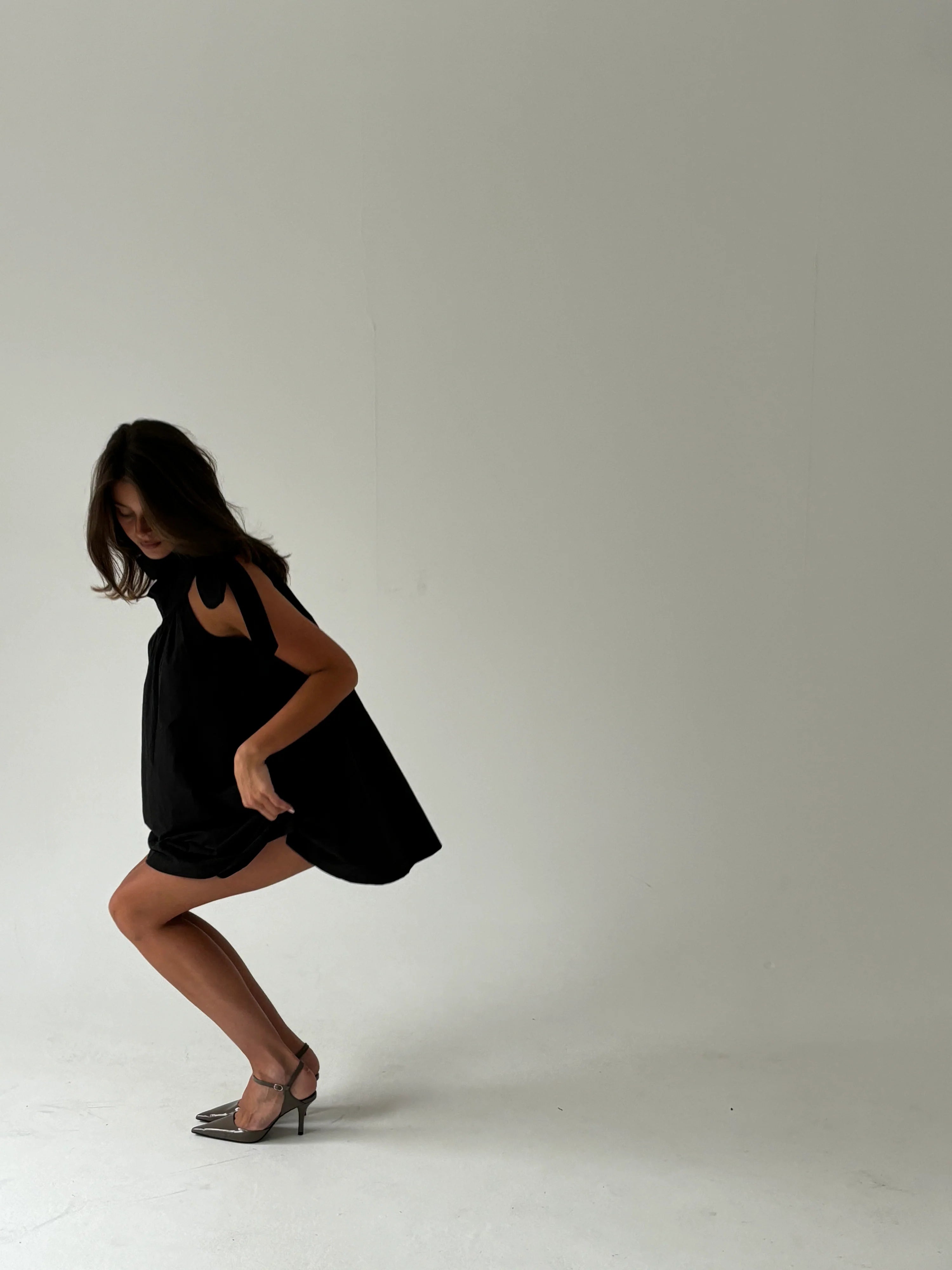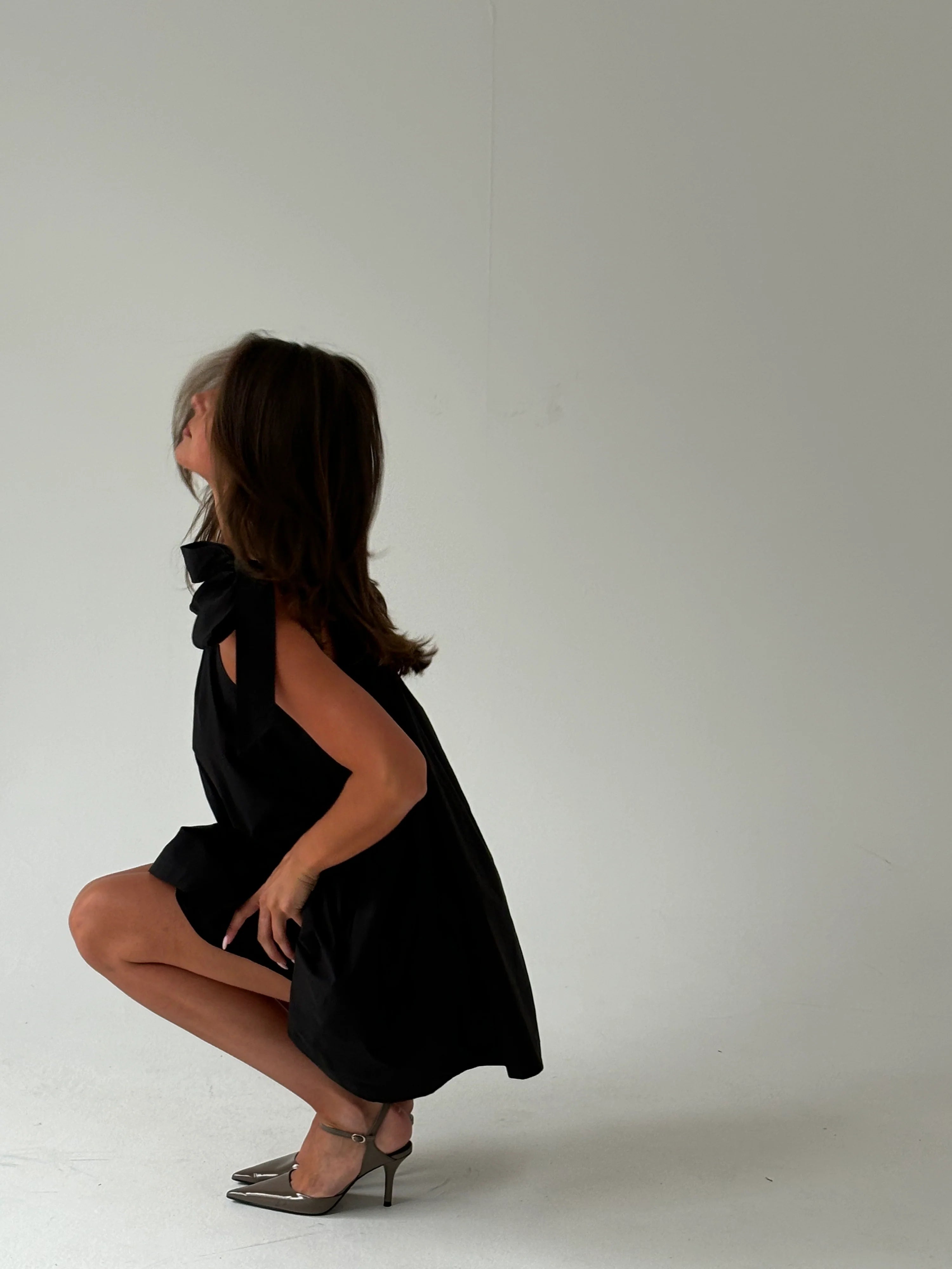 This black mini dress features wide straps and a playful puffed skirt for a cute yet comfortable fit. Soft, lightweight, and easy to wear, it creates a sweet silhouette that’s perfect for daily outings, dates, or casual parties.