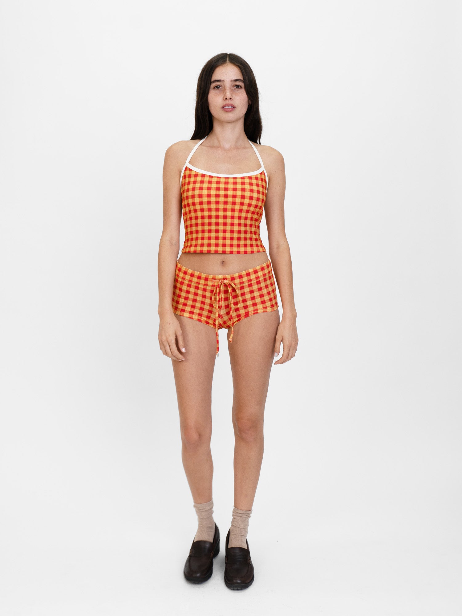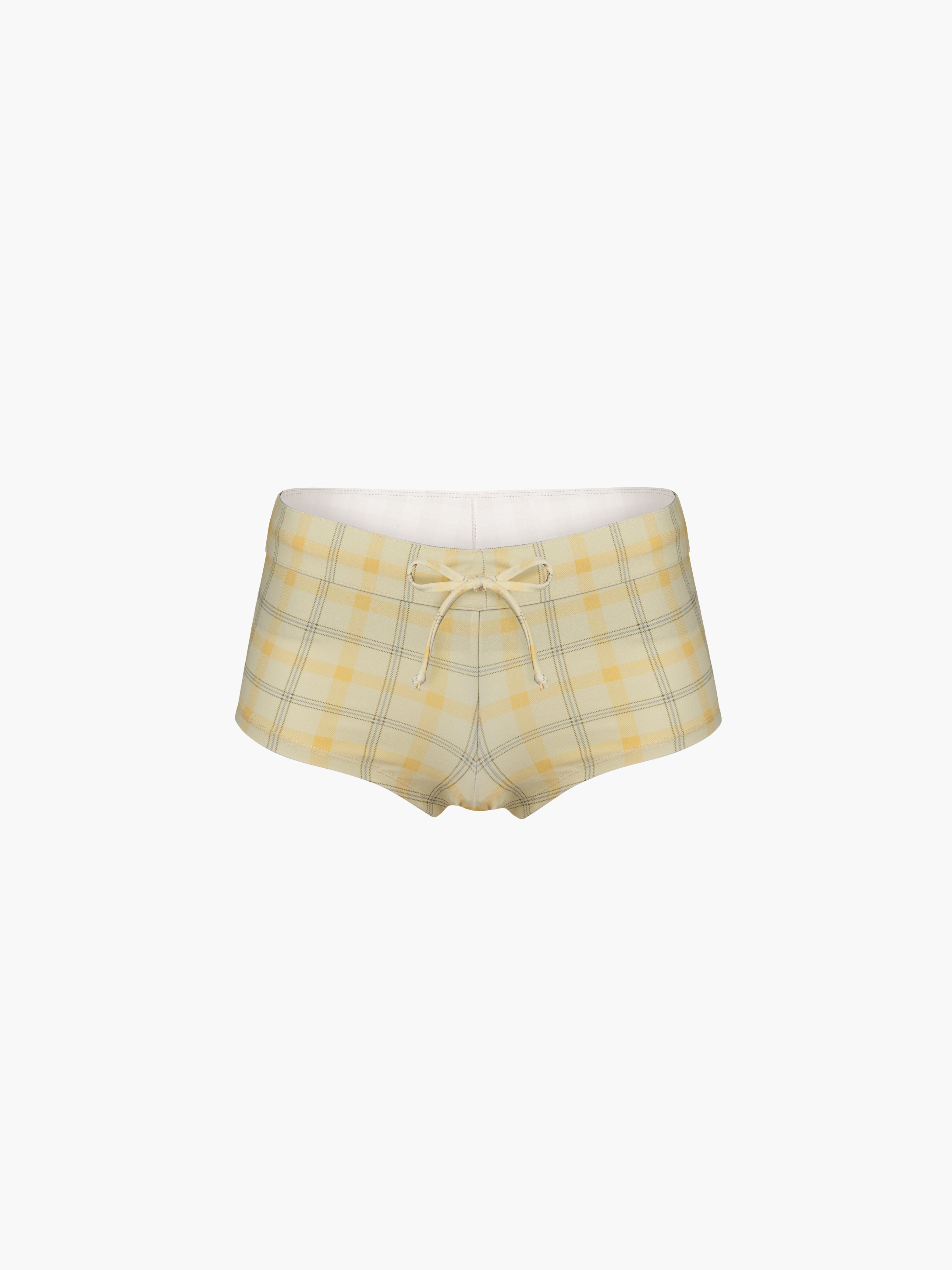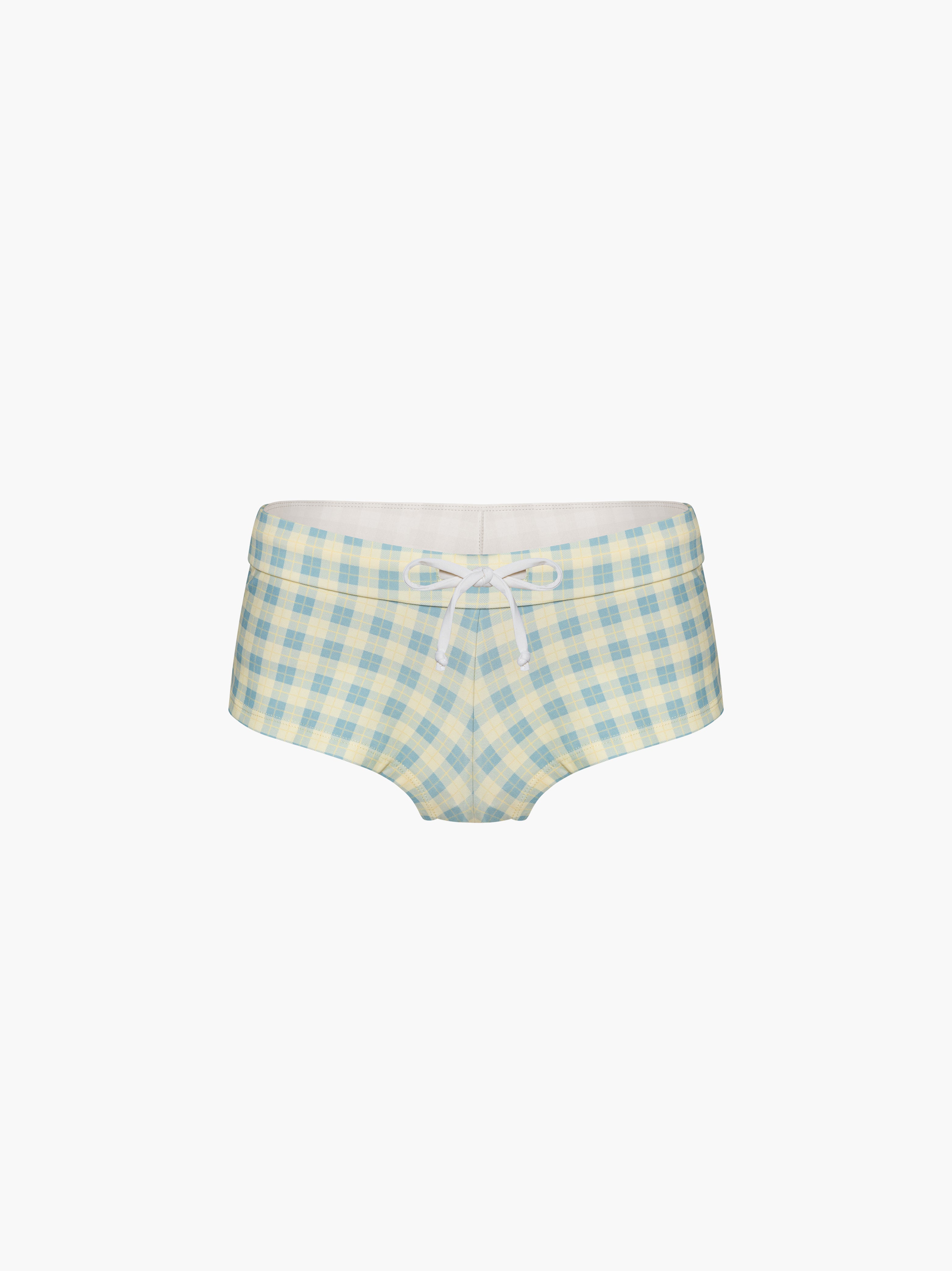 Oddli tankini bottom in custom plaids. The perfect bottom, you'll feel it when you try them on. While made to be a swim bottom, they also make a fun pair of shorts to wear out with the Oddli label on the back waistband.
