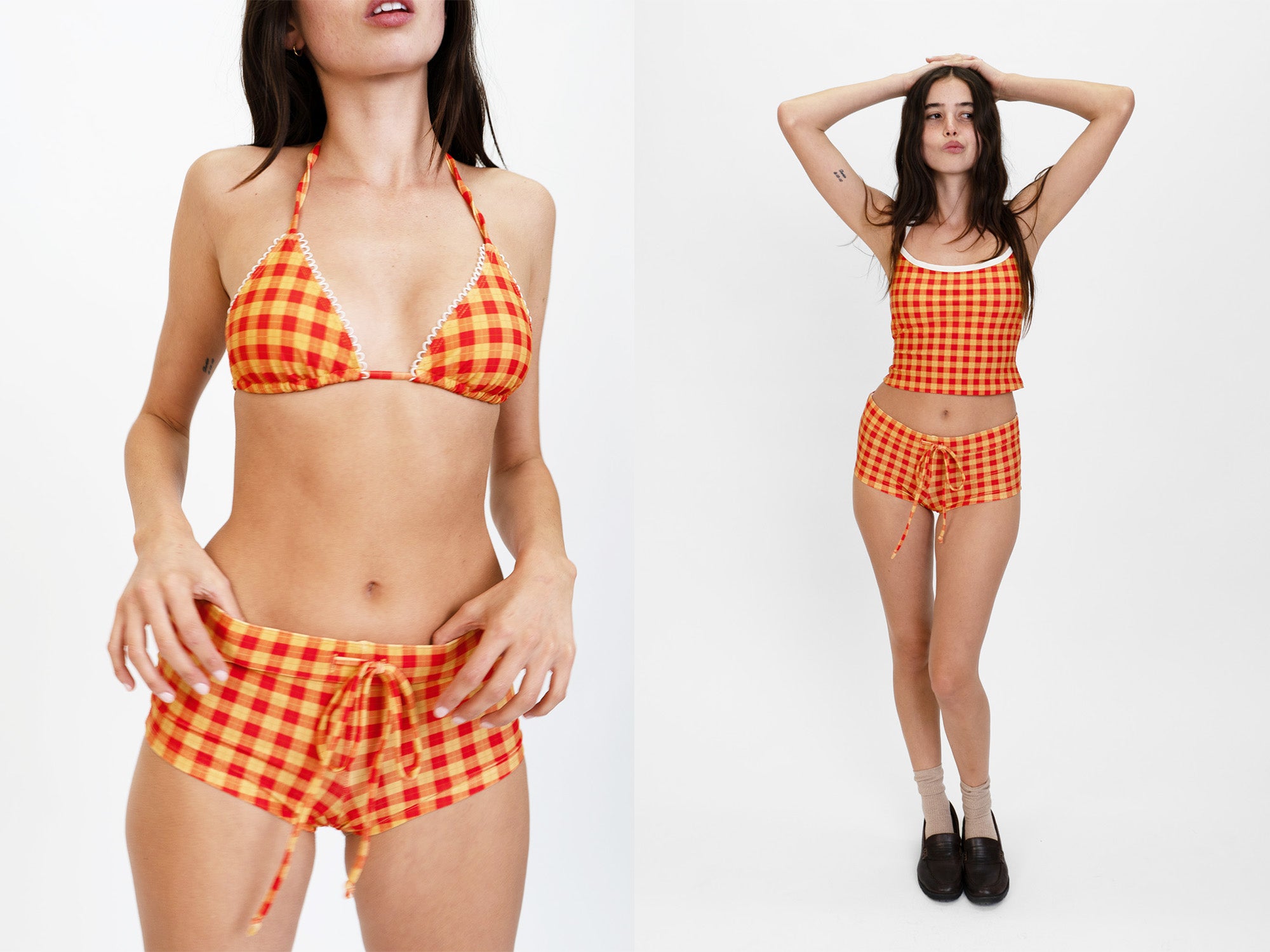 This piece runs true to size, designed for a comfortable but cheeky fit. Emilia is 5’5” with a 24” waist, 29” bust, and 35” 1/2 hips. She wears size XS in the Tankini Bottom.