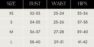 Model is 5'4" with a 33" bust and a 26" waist wearing a size small.