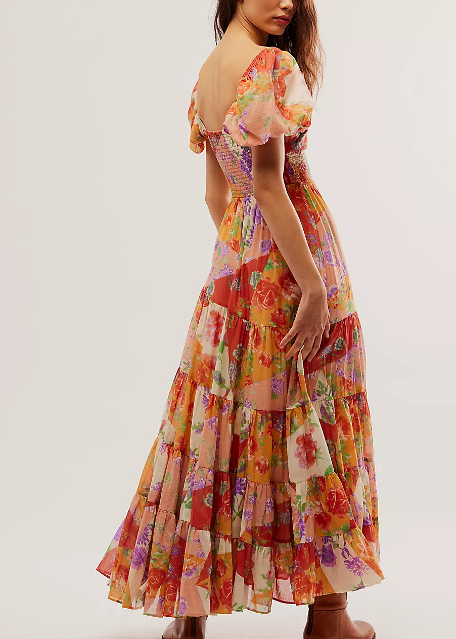 Orange Bohemian Floral Maxi Dress