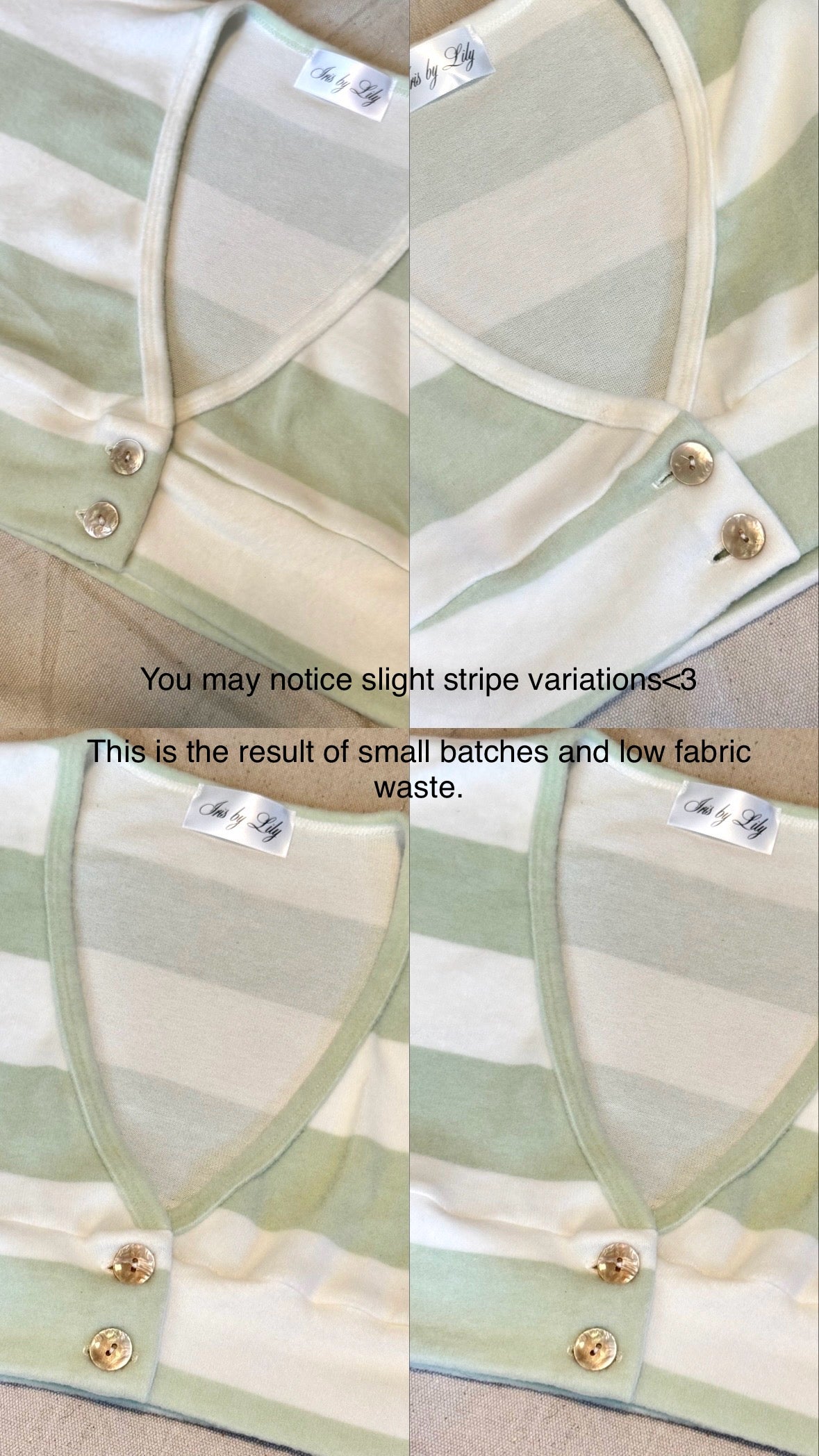 A Thick, stretchy, button-front micro cardigan crafted in Los Angeles. Extra long sleeves and perfect for layering.