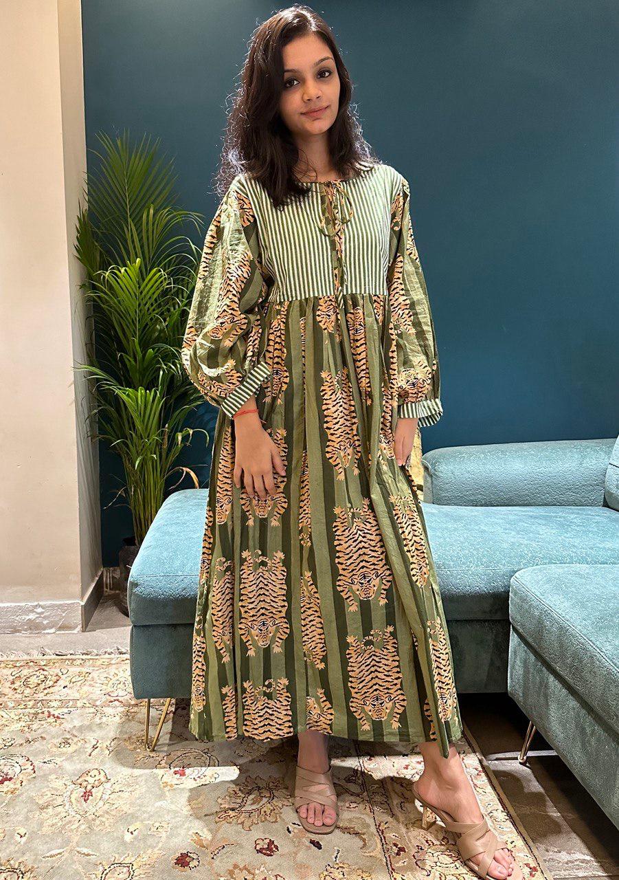 Green Stripes Tiger Midi Dress | Mini Dress – Boho Chic & Wild Elegance